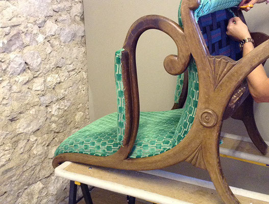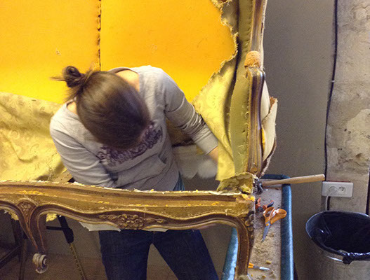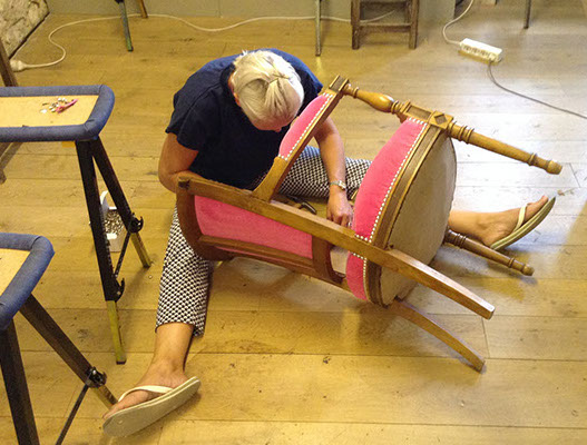 Atelier/cours tapisserie et couture d’ameublement Debra Kingwill Les cours ont lieu pendant la semaine 9h30-13h00 ou 14h00-17h30 Lundi, mardi, jeudi, vendredi Il vous faudra apporter la pièce de mobilier sur laquelle vous travaillerez. Tous les outils et fournitures sont disponibles pendant les cours et peuvent aussi être commandés pour vous. Nous travaillons avec Fabrica Design qui propose un large éventail de tissus et passementeries. 26€ par session (matinée ou après-midi) debra@couturedameublement.fr